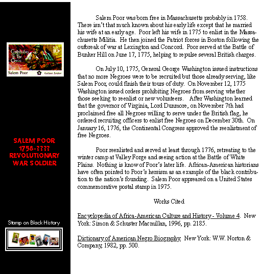 Peter Salem -Peter Salem and two other blacks Cuff Whitemore and Salem Poor were honored for bravery. Salem became one of the